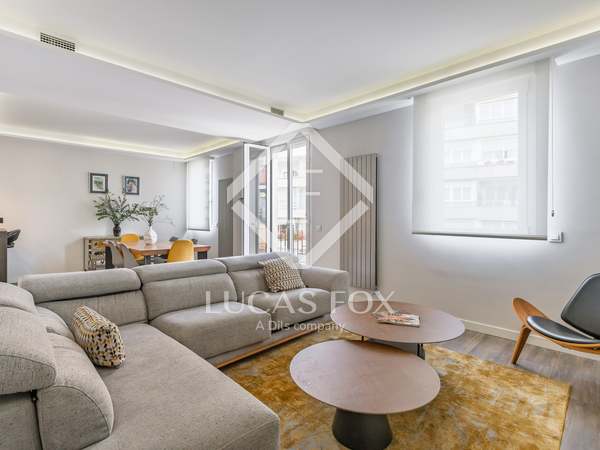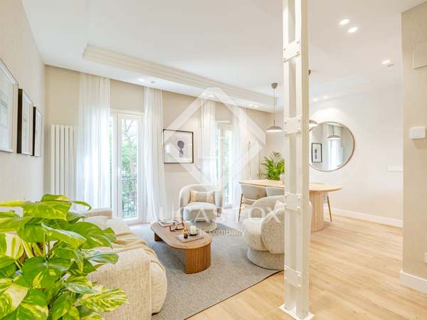 Elegant, volledig gerenoveerd appartement van 101 m² met 3 slaapkamers en 3 badkamers, te koop in een gewilde wijk van de wijk Salamanca in Madrid.