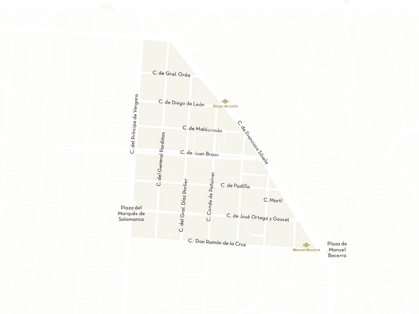 Hoewel de wijk Salamanca de naam draagt van zijn promotor, José María de Salamanca y Mayol, met de Plaza del Marqués de Salamanca als centrale as, valt de aandacht ongetwijfeld altijd op de schoonheid van de Puerta de Alcalá, het park El Retiro of de Paseo de Recoletos.
