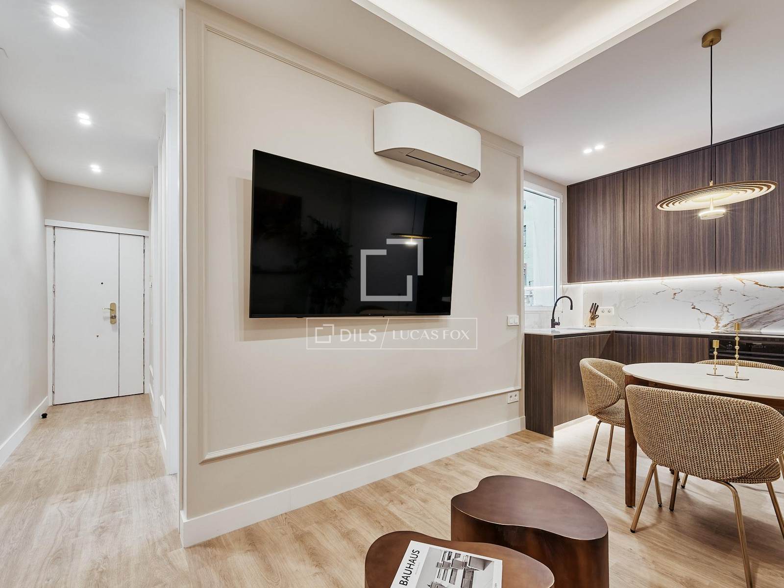 De woning beschikt over twee tweepersoonsslaapkamers, een complete badkamer en een kleedkamer. De woonkamer en de volledig uitgeruste keuken vormen een open ruimte. Bovendien is het appartement gemeubileerd en voorzien van airconditioning en gasverwarming voor optimaal comfort het hele jaar door.