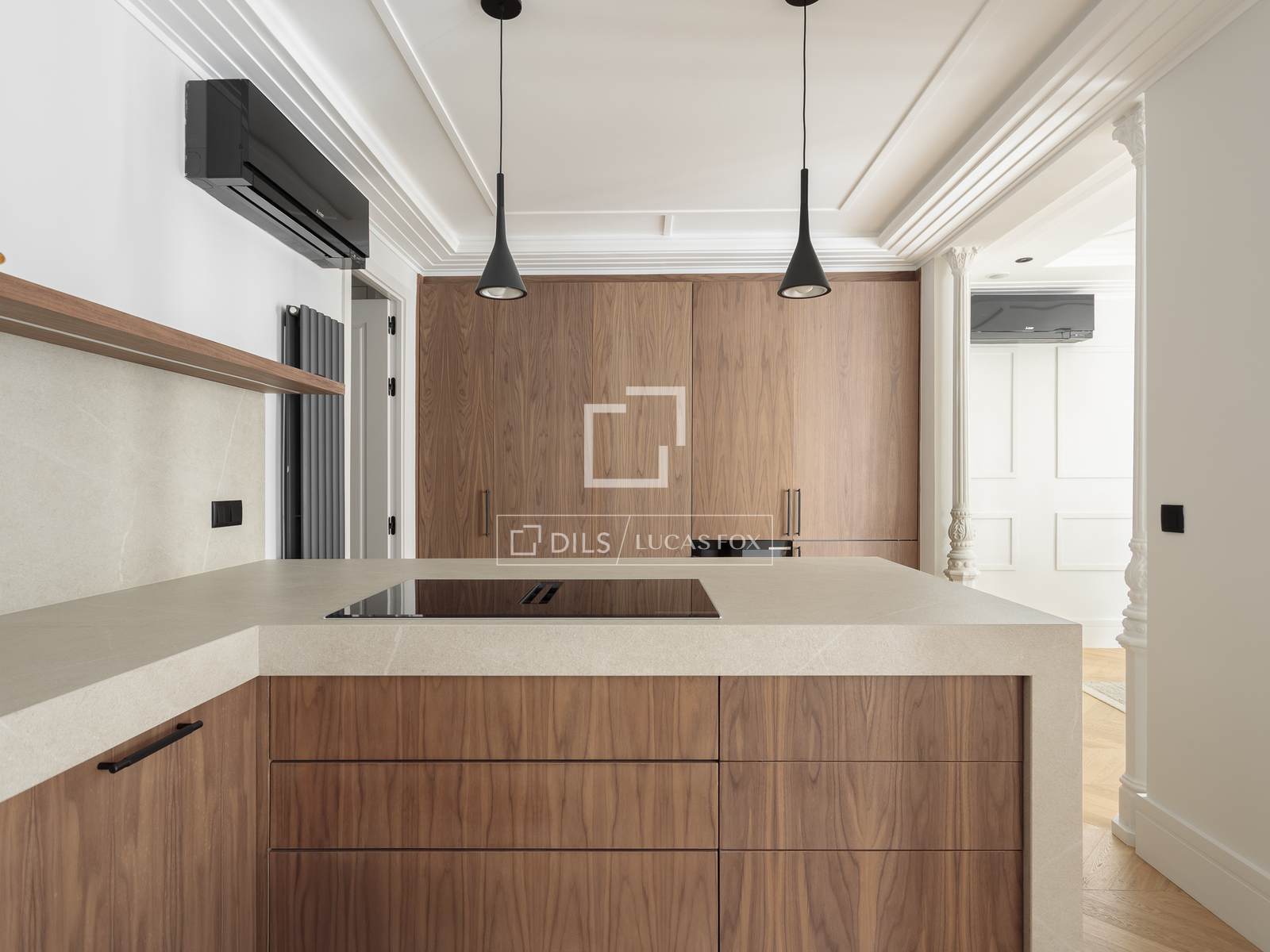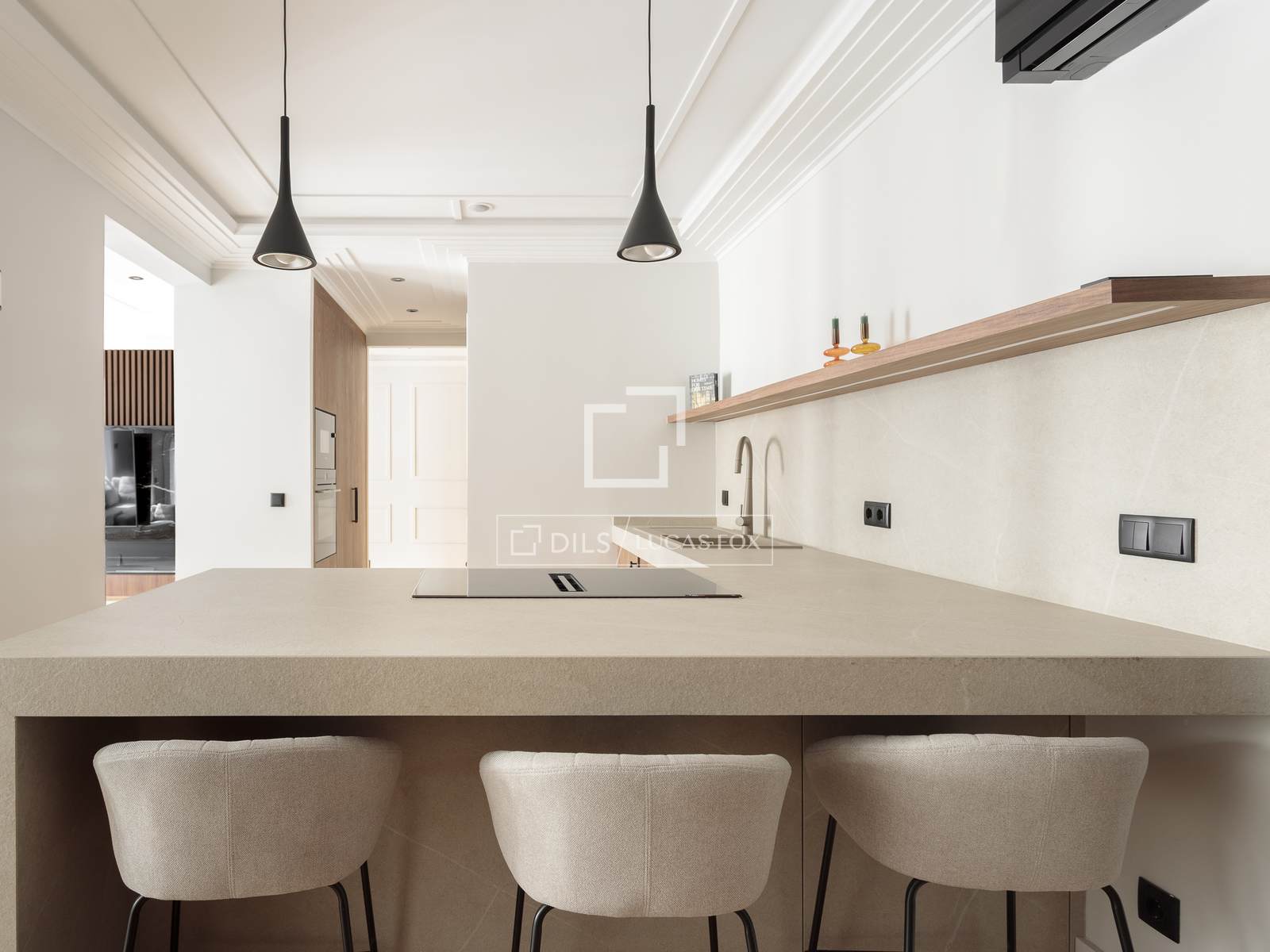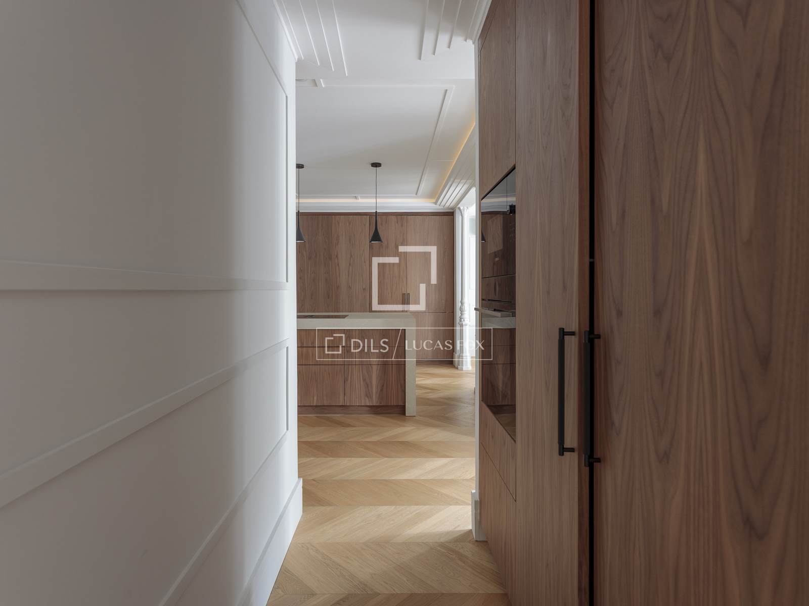 Een van de belangrijkste kenmerken is de ruime woon-eetkamer, die dankzij de uitstekende ligging op het zuiden baadt in een buitengewoon natuurlijk licht. De drie balkons met uitzicht op de straat zorgen niet alleen voor licht, maar ook voor karakter, waardoor het interieur van de woning verbonden wordt met de dynamiek en elegantie van de omgeving. Een ideale ruimte om te ontspannen en gasten te ontvangen in een verfijnde setting.
