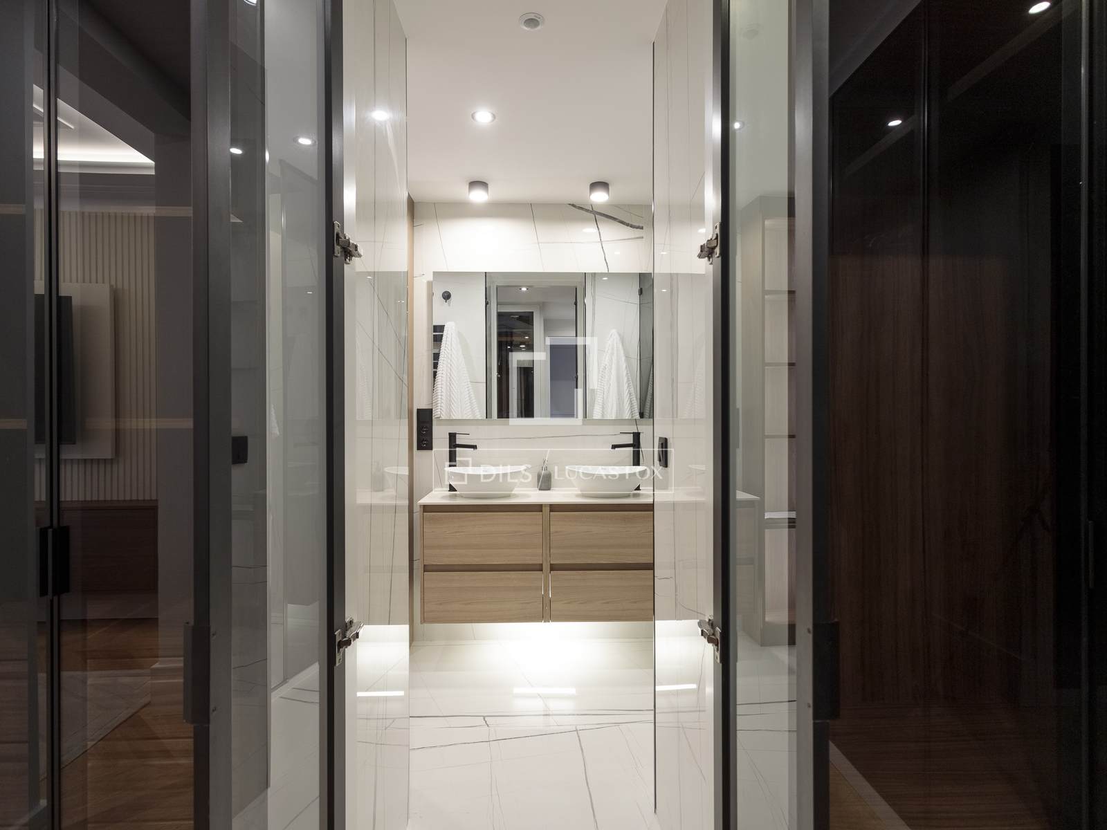- Twee slaapkamers met eigen badkamers.
