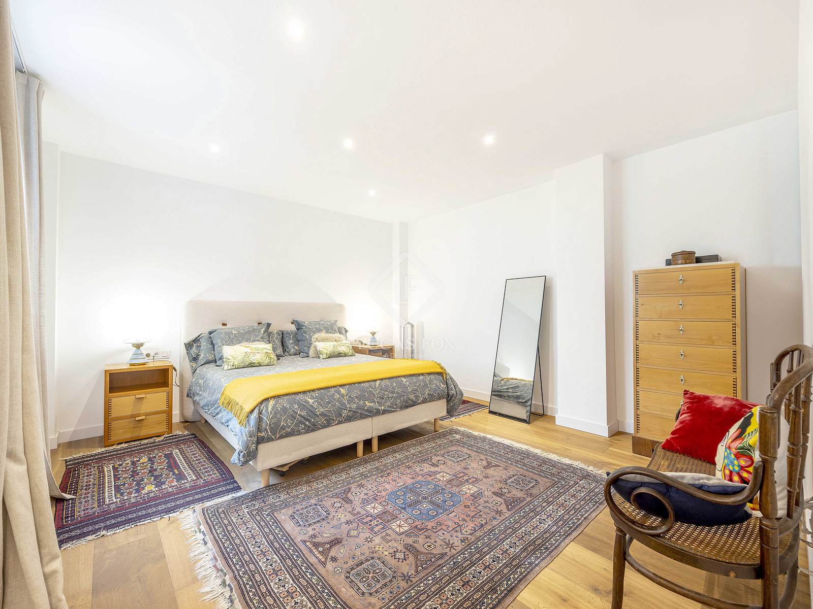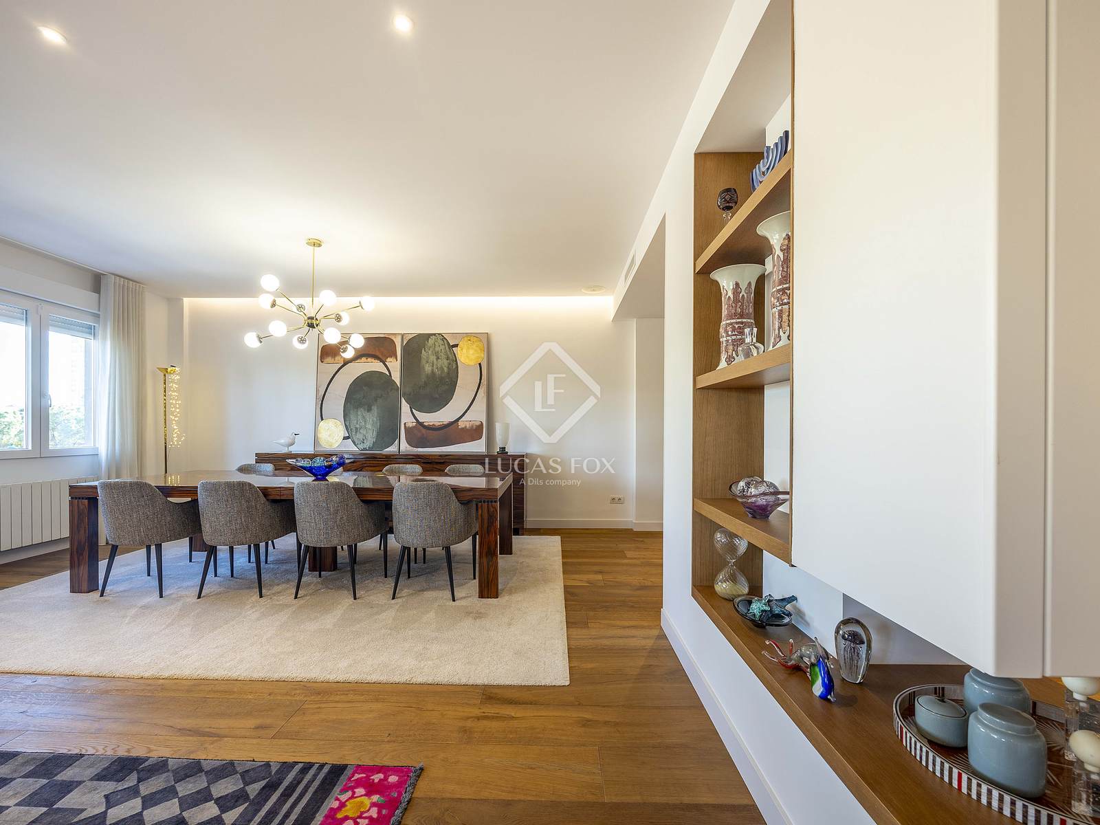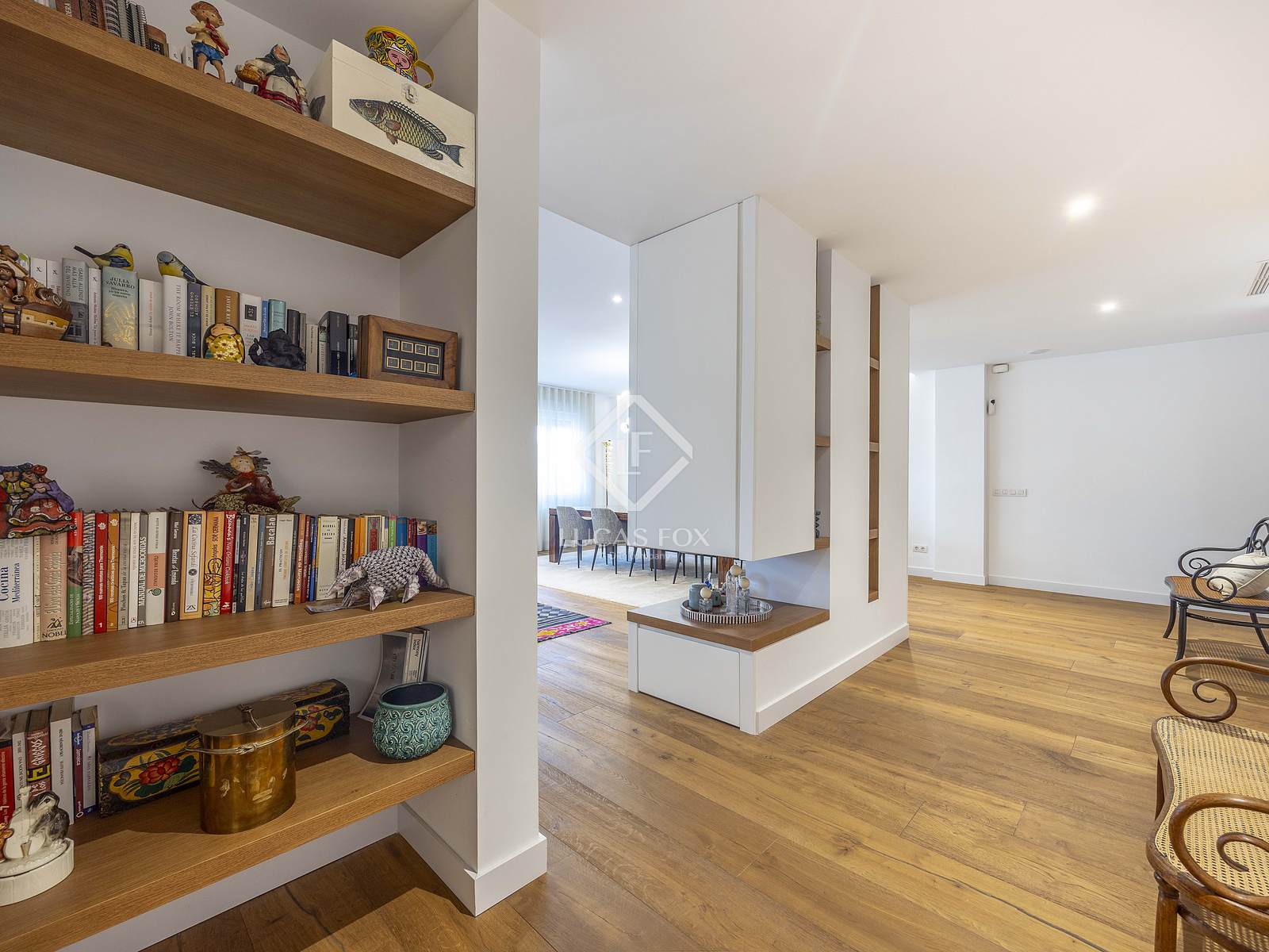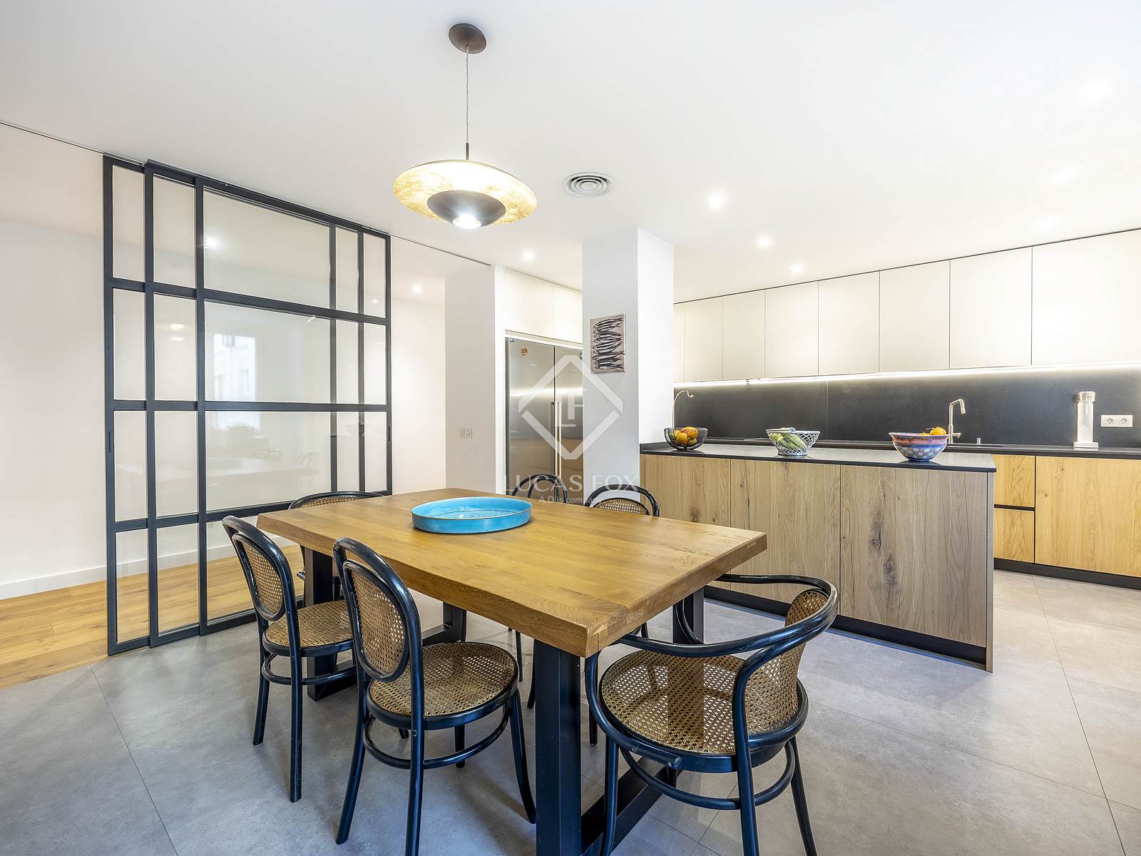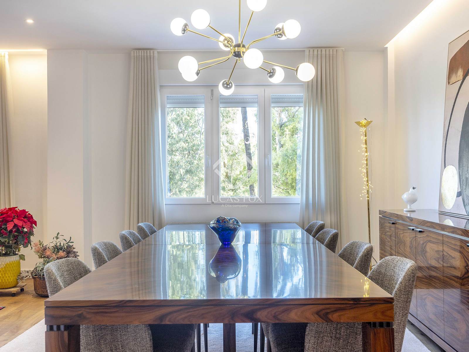 Bij binnenkomst valt direct het ruime en elegante design van de hal op, die alvast een voorproefje geeft van het verfijnde karakter van de rest van het huis. Vanuit hier bereikt u de grote woon-eetkamer, een bevoorrechte ruimte dankzij de drie ramen met uitzicht op de prachtige Turia-riviertuinen, die de kamer de hele dag door met natuurlijk licht vullen.