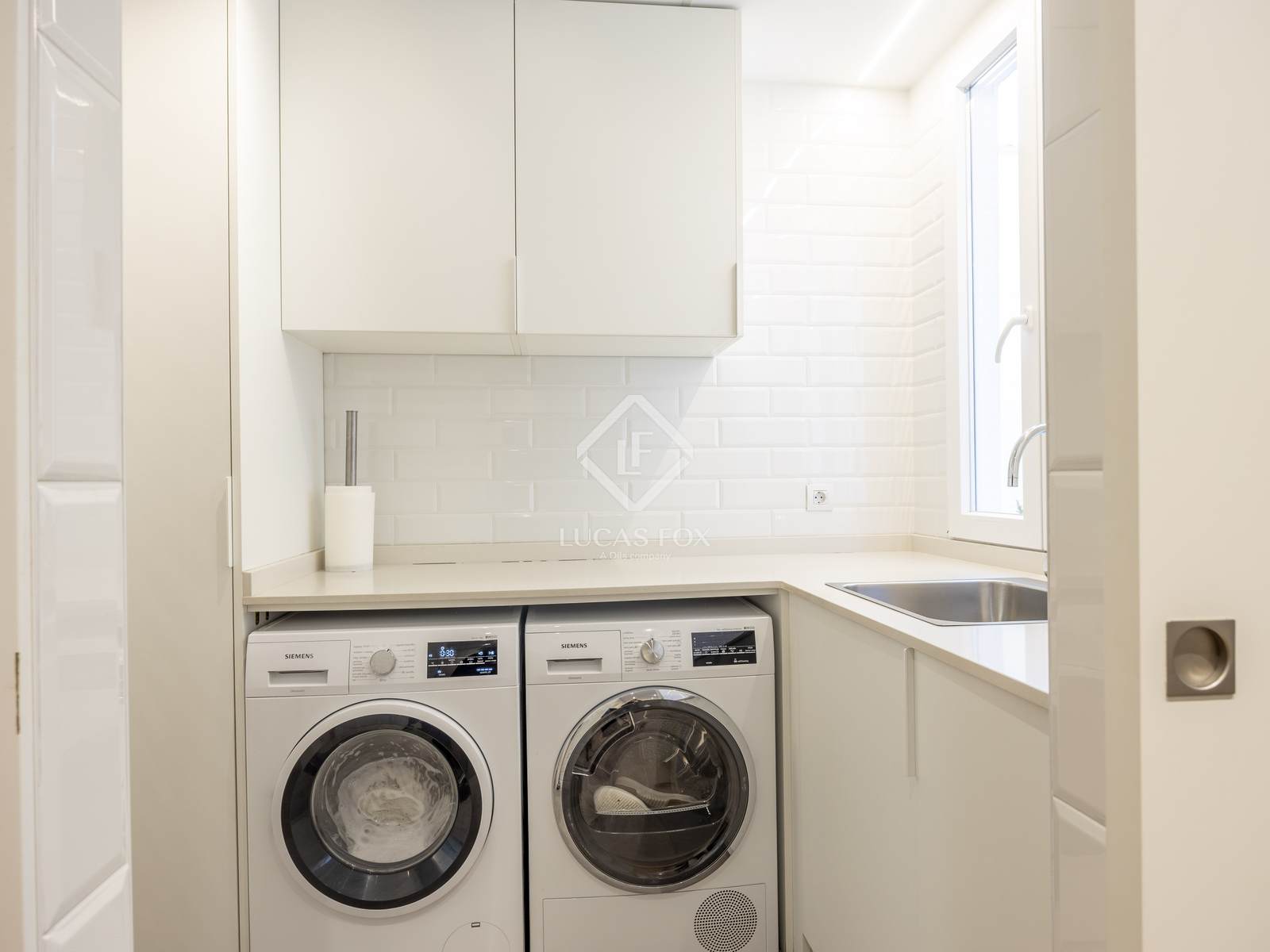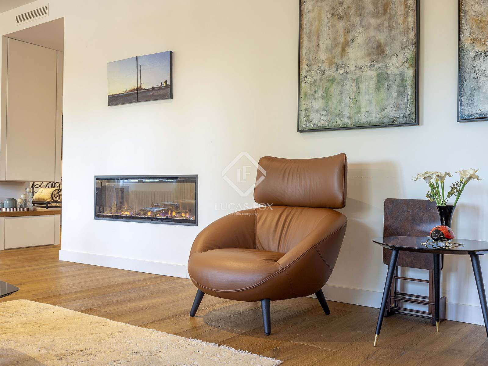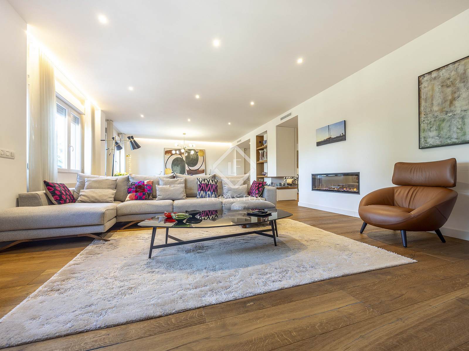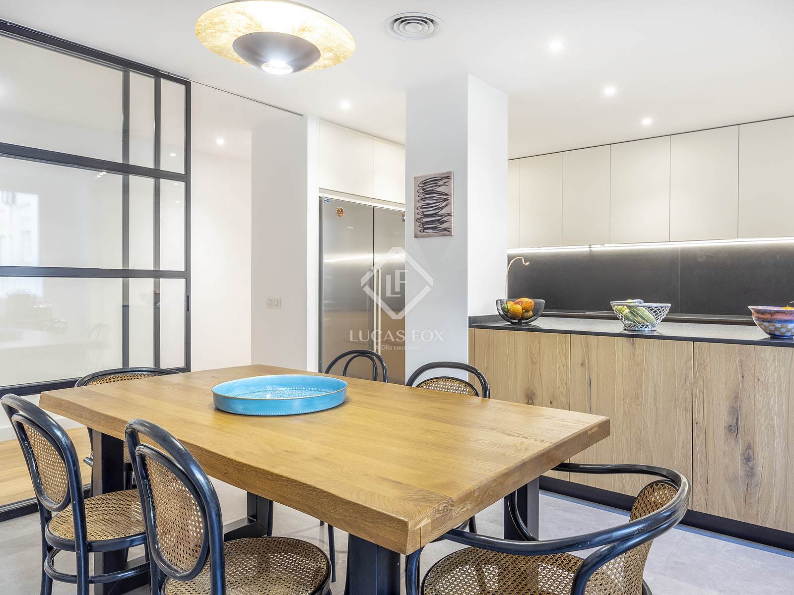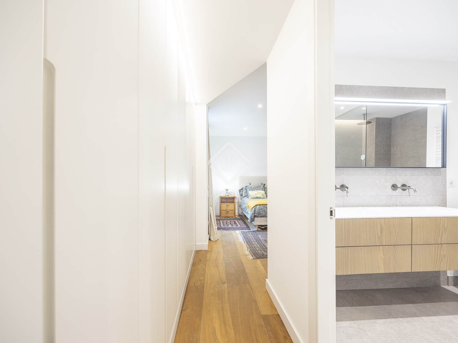 Bij binnenkomst valt direct het ruime en elegante design van de hal op, die alvast een voorproefje geeft van het verfijnde karakter van de rest van het huis. Vanuit hier bereikt u de grote woon-eetkamer, een bevoorrechte ruimte dankzij de drie ramen met uitzicht op de prachtige Turia-riviertuinen, die de kamer de hele dag door met natuurlijk licht vullen.