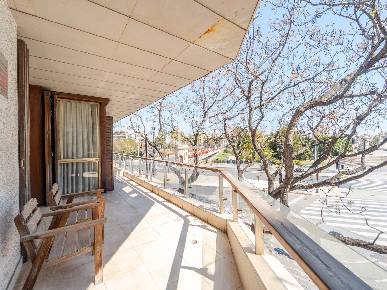 Elegant appartement met terras en vrij uitzicht te koop in een iconisch gebouw op een unieke locatie in Pla del Remei, Valencia.